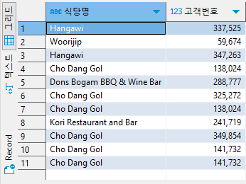 SELECT restaurant_name '식당명', customer_id '고객번호'