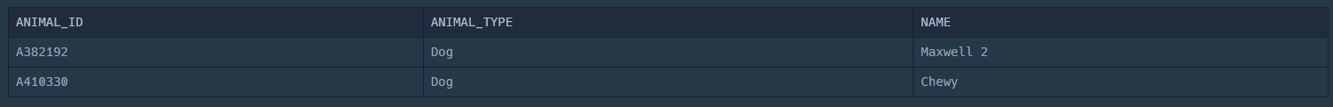 SELECT a.ANIMAL_ID,