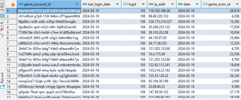 [문제5] game_account_id 마지막 접속날짜, 상세로그정보 조회