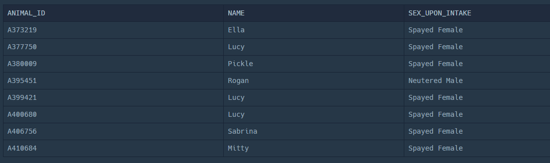 SELECT ANIMAL_ID,