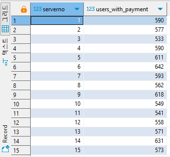 * 서버번호와 해당서버에서 결제한 사용자수를 반환