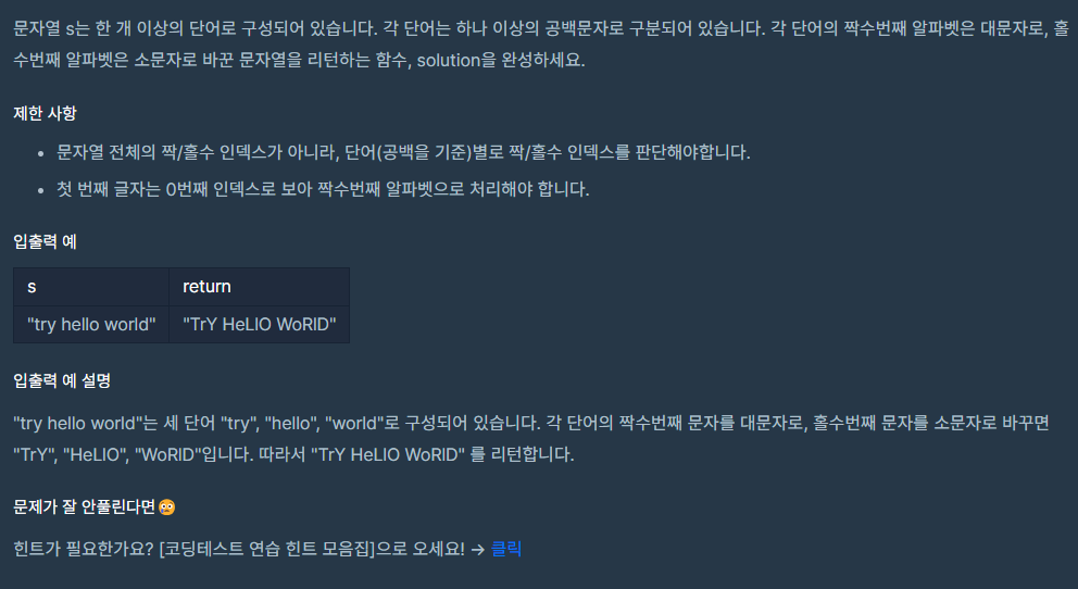 전체 문자열에서 생각했기 때문에 틀림. 각 단어를 기준으로 홀짝을 정해야됨 그러면 각 단어를 분리 해내는 방법이 뭘까