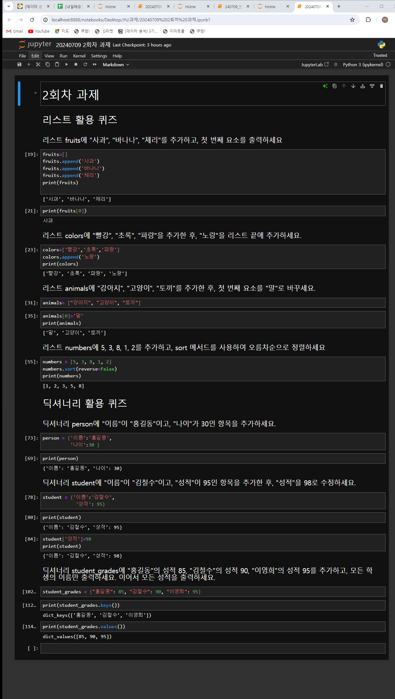2회차 강의는 리스트와 딕셔너리에 대한 부분을 배웠다.